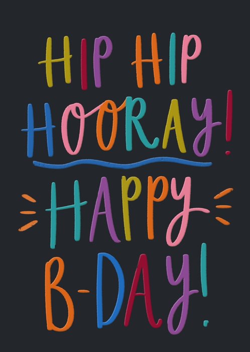 Hip Hip Hooray Happy B-Day Colourful Typography Card