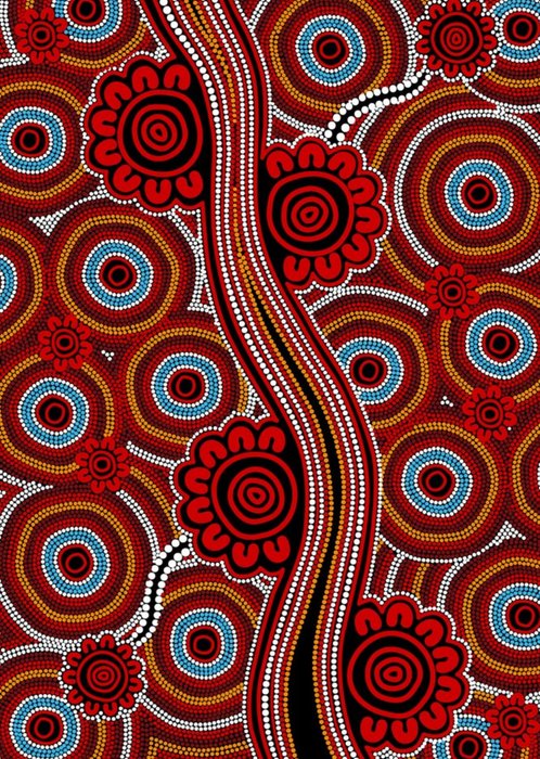 Illustration of a colourful Aboriginal art patterns