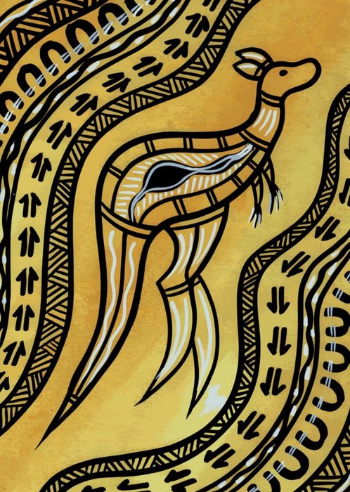 Illustration of a kangaroo with Aboriginal art patterns