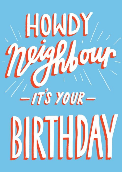 Howdy Neighbour It's Your Birthday Typographic Card