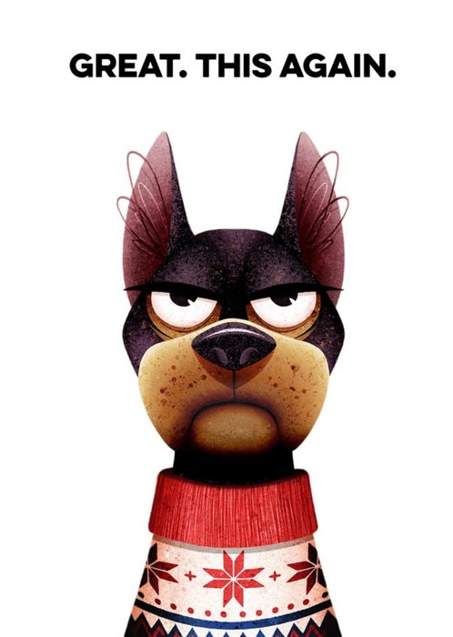 Humorous Illustration Of A Grumpy Dog In A Christmas Jumper Christmas Card