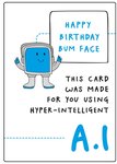 "Happy birthday bum face this card was made for you using hyper-intelligent A.I".