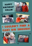 "Happy birthday Collin I couldn't find a cake big enough!". All text can be personalised!