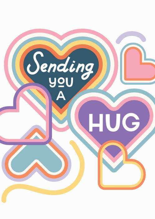 Illustrated Colourful Hearts Sending You A Hug Card