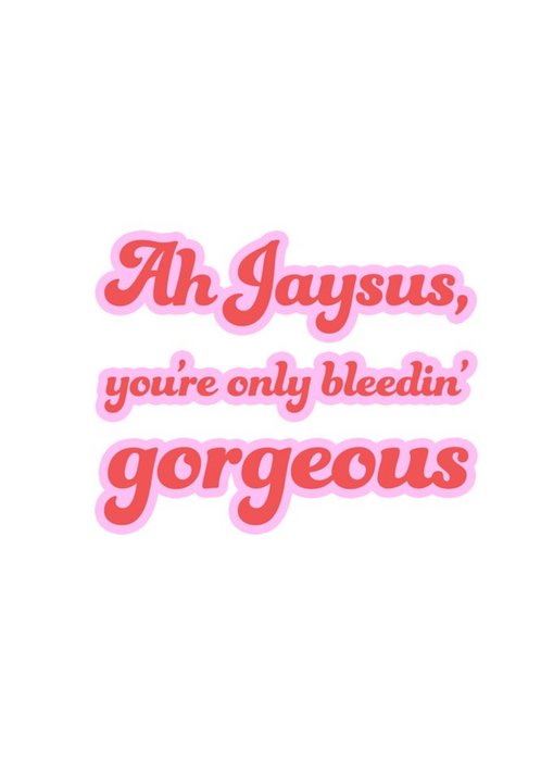 The card reads: "Ah jaysus, you're only bleedin' gorgeous".
