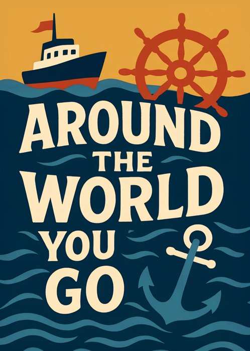 Illustrated Sailboat Around The World You Go Bon Voyage Card