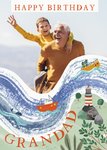 Illustrated Seaside Photo Upload Grandad Birthday Card