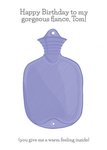 Happy Birthday to my gorgeous fiance Tom. (you give me a warm feeling Inside) Hot Water Bottle Card Editable text is: Happy Birthday to my gorgeous fiance Tom. (you give me a warm feeling Inside)