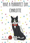 Illustration A Cat With A Ball Of Wool. Have A Purrrrfect Day Birthday Card