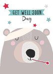 Illustration Of A Bear With A Head Bandage And A Thermometer Get Well Soon Card