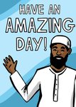 Illustration Of A Muslim Man Smiling And Waving Have An Amazing Day Card