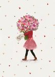 Illustration Of A Woman With A Large Bouquet Of Flowers Just To Say Card