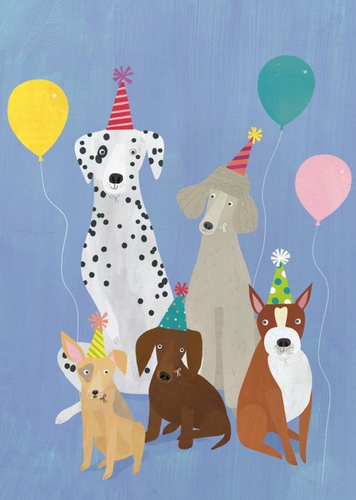Illustration Of Various Dogs In Party Hats Birthday Card