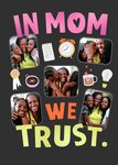 A heartfelt greeting card with a dark background, glittery text, and multiple photo upload areas, celebrating trust and appreciation for Mom with warm, affectionate illustrations.