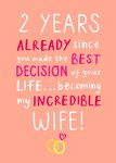 ā2 years already since you made the best decision of your life, becoming my incredible wife!ā '2 years' and 'wife' can be personalised!