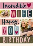 Incredible Wife Happy 60th Birthday Photo Upload Card