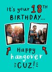 It's Your 18th Birthday Happy Hangover Cuz Photo Upload Card