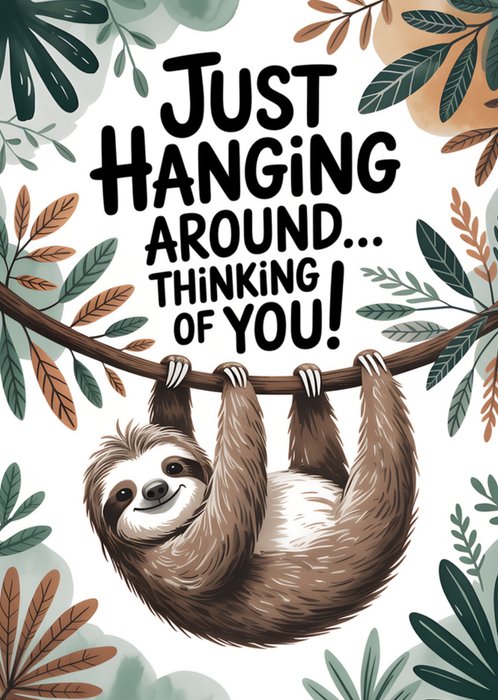 Just Hanging Around Thinking Of You Typographic Illustrated Sloth Card