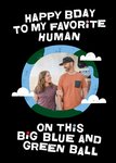 Upload a photo and remind your favourite human where they rank on this big blue and green ball with this adorable Birthday card.
