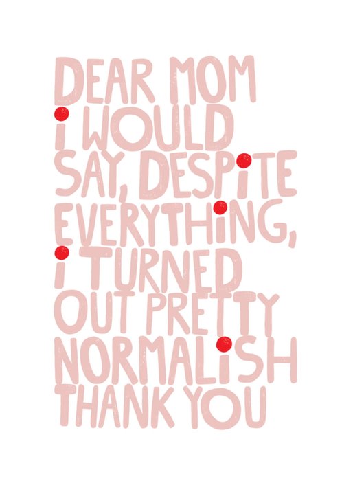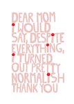 "Dear mom I would say despite everything, I turned out pretty normalish thank you".