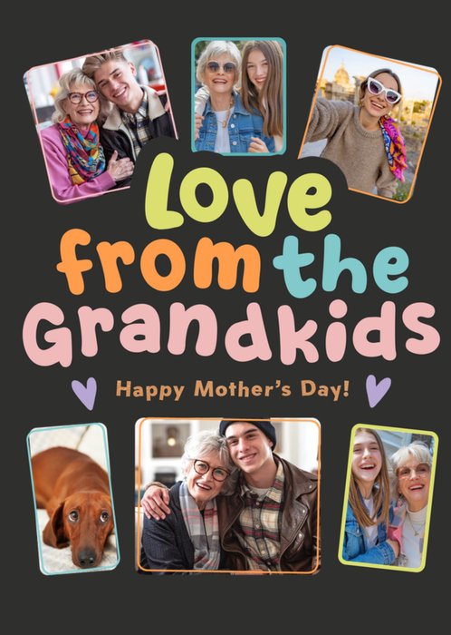 A stylish and affectionate Mother’s Day card from the grandkids, featuring a modern design with multiple photo frames and a heartfelt message. Perfect for showing grandma some love.