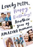 Lovely Mom Happy Birthday Amazing Memories Typographic Photo Upload Card