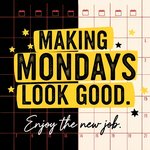 Featuring bold yellow panels with blocky, black text on a black and white calendar grid background with dates and scattered stars.