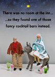 "There was no room at the inn...so they found one of those fancy cocktail bars instead."