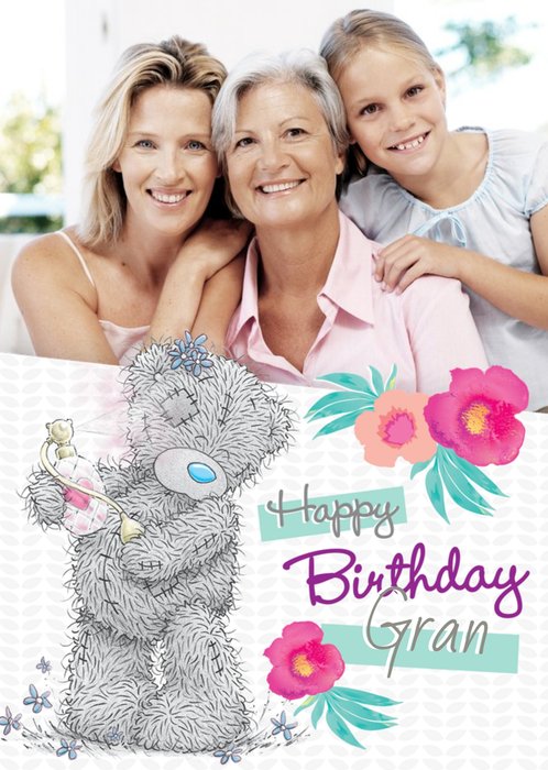 Me To You Tatty Teddy And Flowers Happy Birthday Gran Photo Card