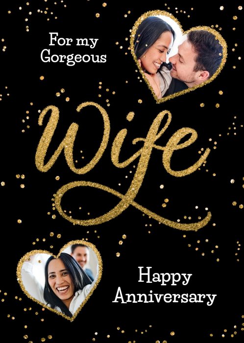 Metallic Lettering Gorgeous Wife Happy Anniversary Photo Upload Card