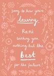 Millicent Venton Contemporary illustration featuring line drawings of flowers, plants and leaves on an orange background. The non editable typogrpahic caption reads Sorry To Hear You're Leaving, editable recipient's name. Followed by non editable Wishing You Nothing But The Best For The Future!