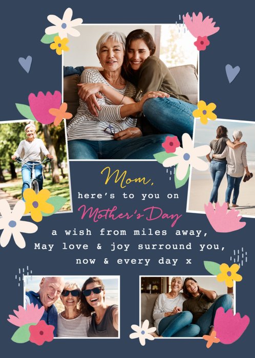"Mom, here's to you on Mother's Day, a wish from miles away, may love & joy surround you, now & every day x."