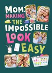 A heartfelt and playful greeting card with a deep teal background, glittery and bold text, fun illustrations, and multiple photo upload areas, celebrating a Mom’s ability to handle everything with ease.