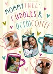 A stylish Mother’s Day card with a coffee theme, celebrating Mommy’s love for cuddles and caffeine. Features a contemporary design with multiple customisable photo upload options within coffee cup illustrations.