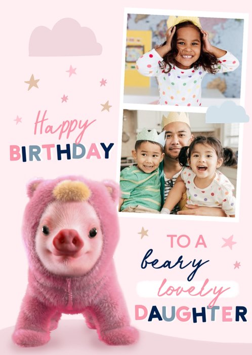 Moonpigs cuddly teddy bear pig birthday card for Daughter featuring 2 photo uploads
