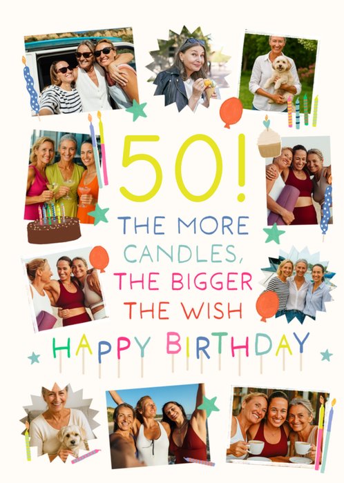 "50! The more candles, the bigger the wish. Happy Birthday".