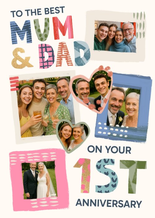 A fun, modern design featuring 7 photo frames surrounded by colourful typography. The design is finished with a warm cream background.