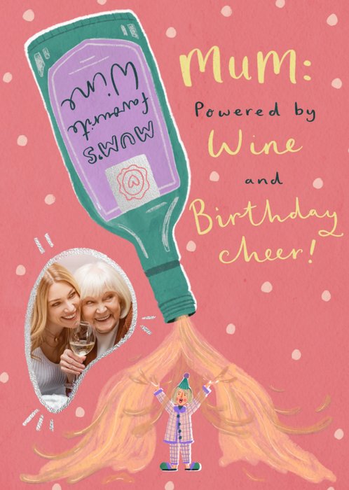Mum Powered By Wine And Birthday Cheer Photo Upload Card
