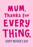 Mum Thanks For Everything Typographic Mother's Day Card