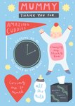 "Mummy. Thank you for... Amazing cuddles. Getting up at all times of the night. Changing my stinky bum! Loving me so much. All the milk. Wiping my snotty nose."