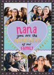 A heartfelt photo upload card celebrating the love and importance of Nana in the family. Featuring a pink heart with a touching message surrounded by gold accents and a collage of photo frames. A perfect card to express appreciation and love for Nana on Mother's Day, her birthday, or any special occasion.