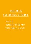 "How to be successful at work: Step 1. Replace 'fuck you' with 'okay, great!'"