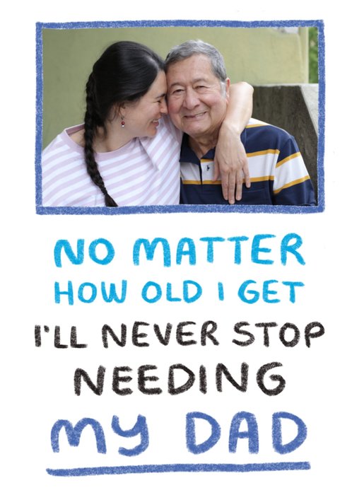Never Stop Needing My Dad Photo Upload Father's Day Card