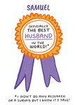 "Samuel officially the best husband in the world!* *I didn't do any research or a survey, but I know It's true". 'Samuel' can be personalised!