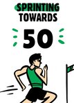 Ilustration of male white sprinter. Customisable age. Text reads:"Sprinting Towards 50"