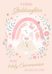"To a precious Goddaughter on your Holy Communion love From Cathy & Nate". 'Goddaughter' and 'love From Cathy & Nate' can be personalised!