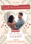 "On our first anniversary Mr & Mrs Jackson I love you forever". 'Jackson' can be personalised!