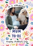 Front of card: Mum-To-Be Photo Upload Mother's Day Card Oval photo frame surrounded by colourful flowers. Text reads: "To a wonderful mum-to-be happy mother's day".