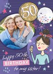 Party Themed 50th Birthday Photo upload Card for Sister