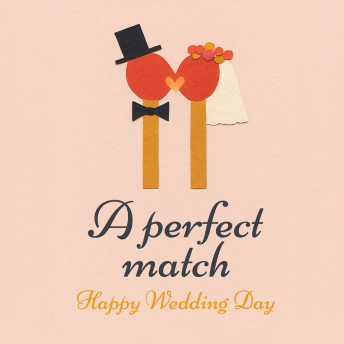 Perfect Match Illustrated Matchstick Couple Wedding Card